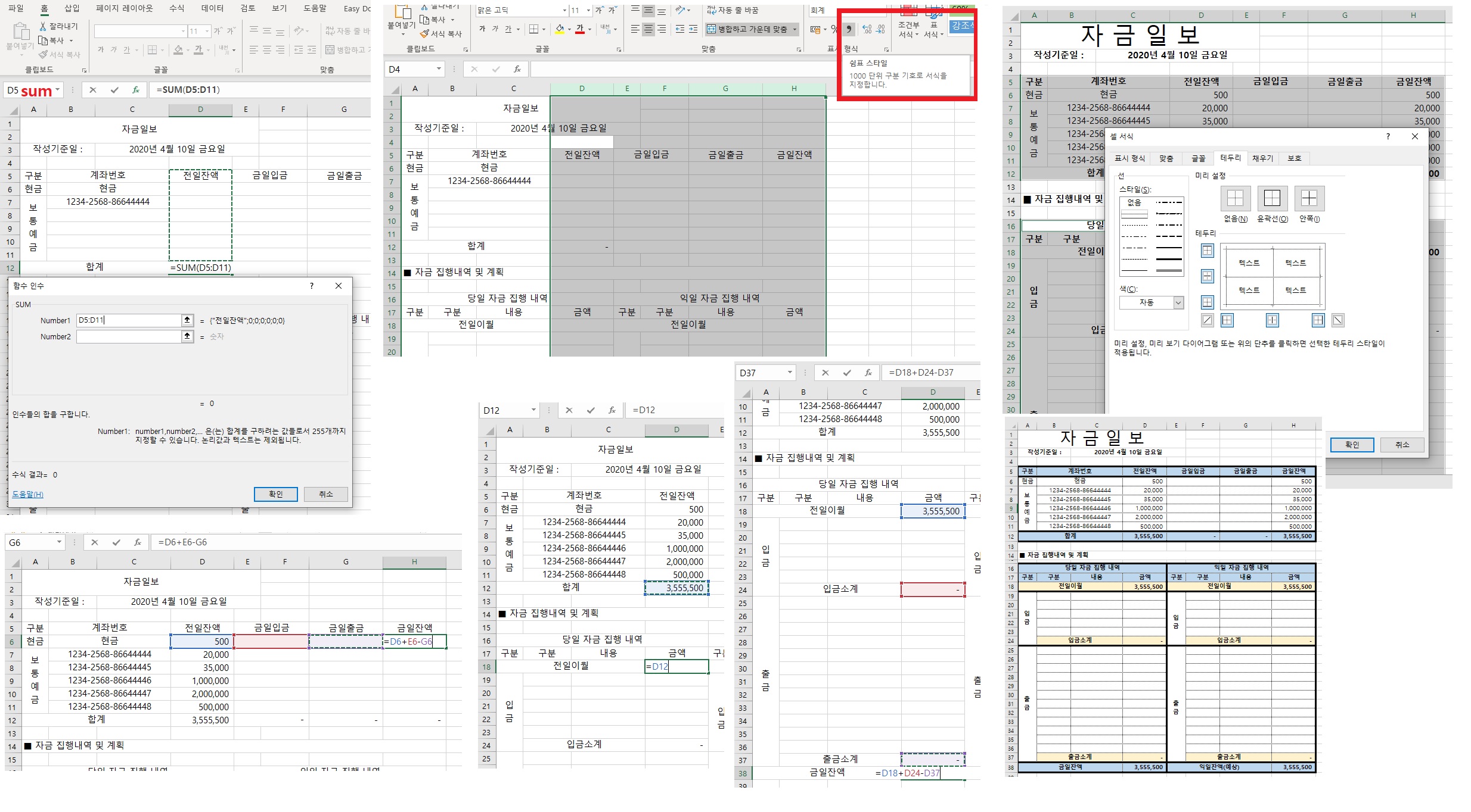 자~ 우리 자금 일보도 완벽하게 완성하였습니다. 이제 활용만 잘하면 업무가 단축되겠어요.